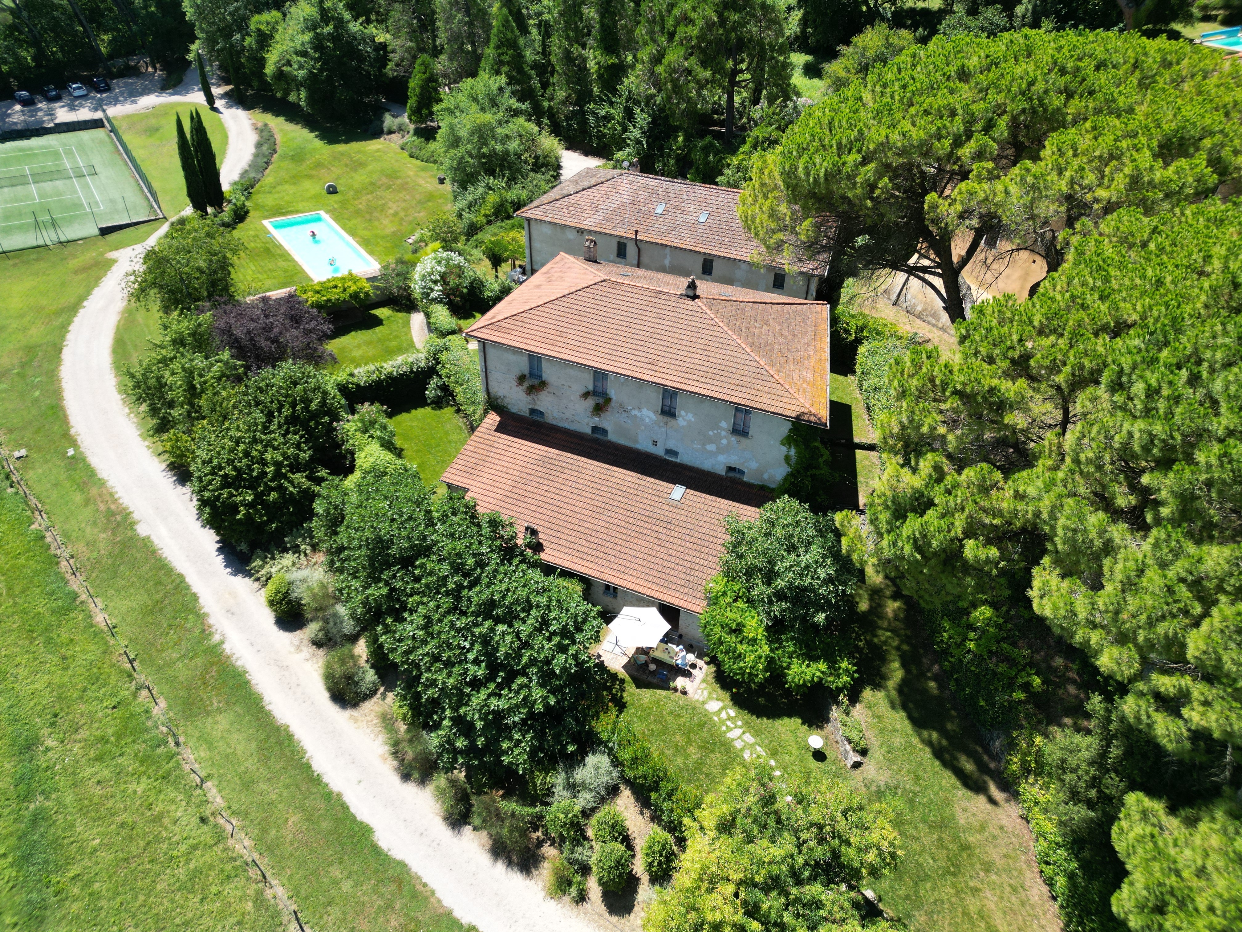 Op het afgesloten domein met 7 woningen ligt een tennisterrein en een gemeenschappelijk zwembad (5x15m). Een wandeling rond het domein biedt prachtige uitzichten op de Tibervallei. Il Fornaio herbergde vroeger de bakoven van de oude hoeve. De site werd tot in de puntjes gerenoveerd met behoud van de authentieke materialen en won in 2008 de award voor het mooiste renovatieproject in la Bella Italia.